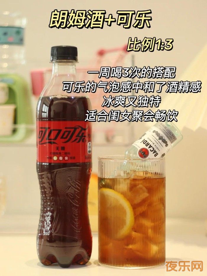 ②朗姆酒+可乐(比例1:3)