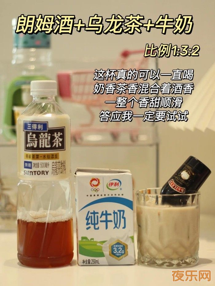 ⑥朗姆酒+乌龙茶+牛(比例1:3:2)